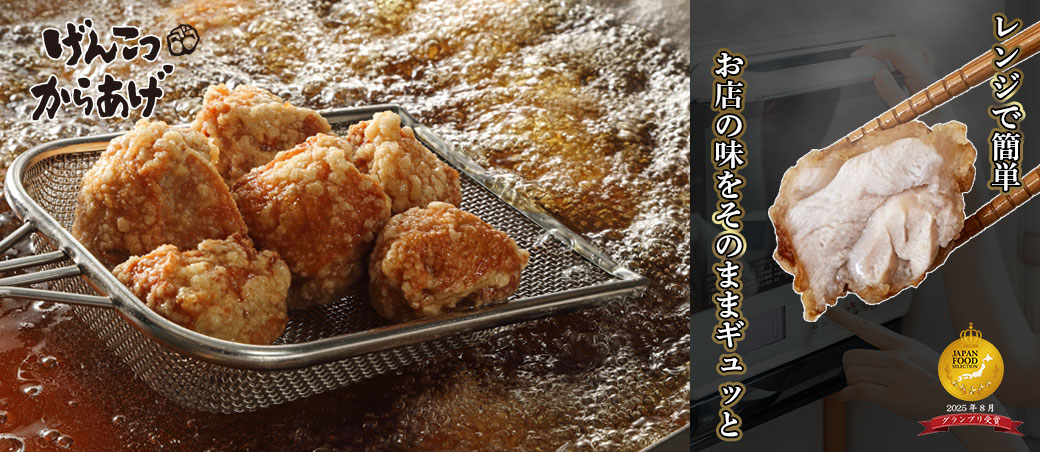 当店名物「げんこつからあげ」を急速冷凍し、美味しさをギュッと閉じ込めました。
